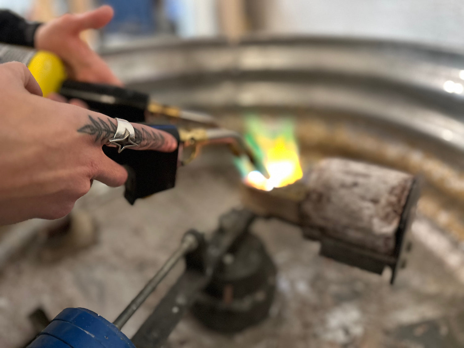 Every piece starts as raw metal grain, shaped and transformed through fire & time. This process is rooted in traditional techniques, ensuring that each creation is unique and built for the long haul. This is art.